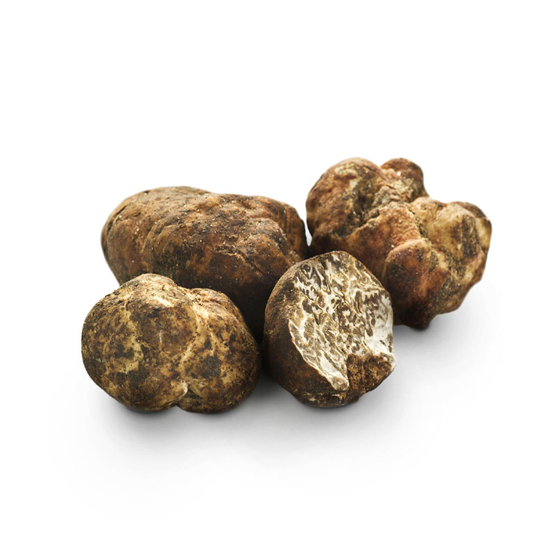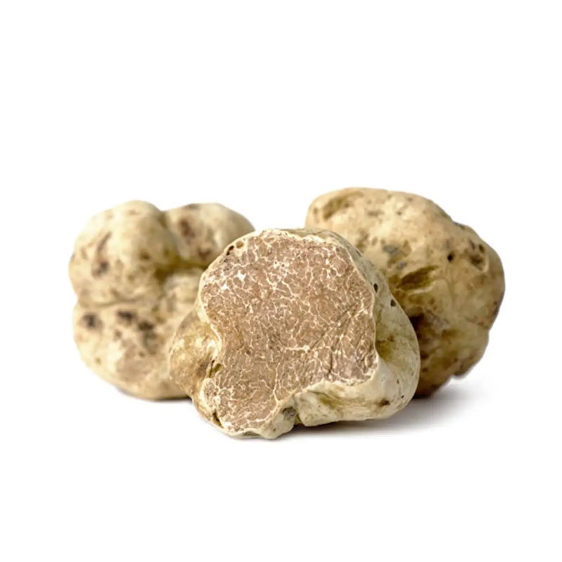 Il Tartufo Bianco (Tuber magnatum Pico) è considerato il tartufo per eccellenza, il più pregiato e ricercato al mondo. Celebre per il suo profumo intenso e inconfondibile e per il gusto estremamente delicato, rappresenta una vera icona dell’alta cucina. Si distingue per il suo colore giallo ocra, la scorza liscia e una polpa color nocciola attraversata da sottili venature bianche, segni distintivi della sua qualità superiore.